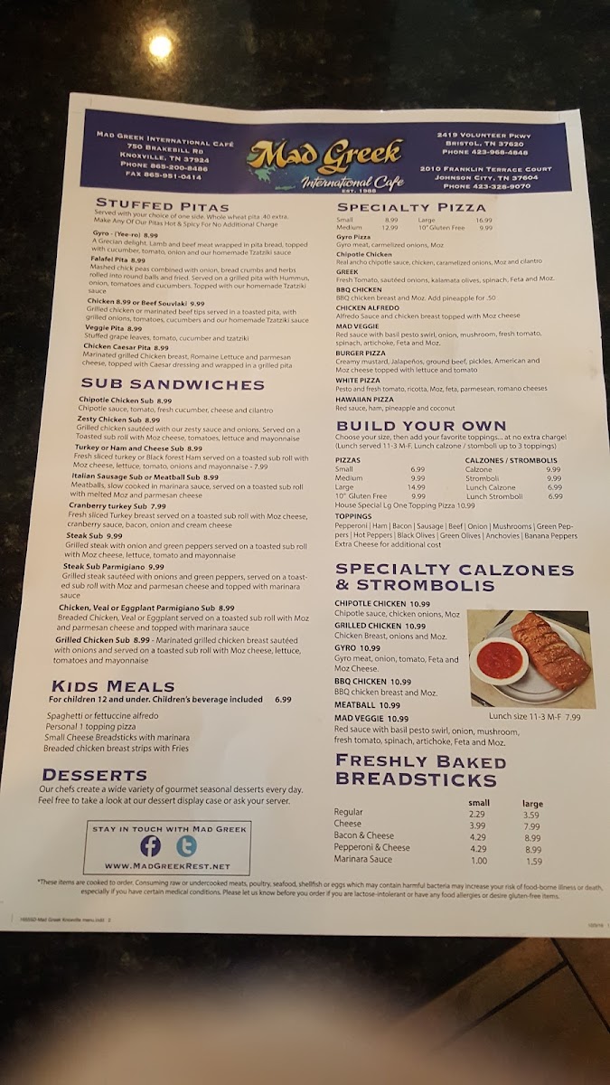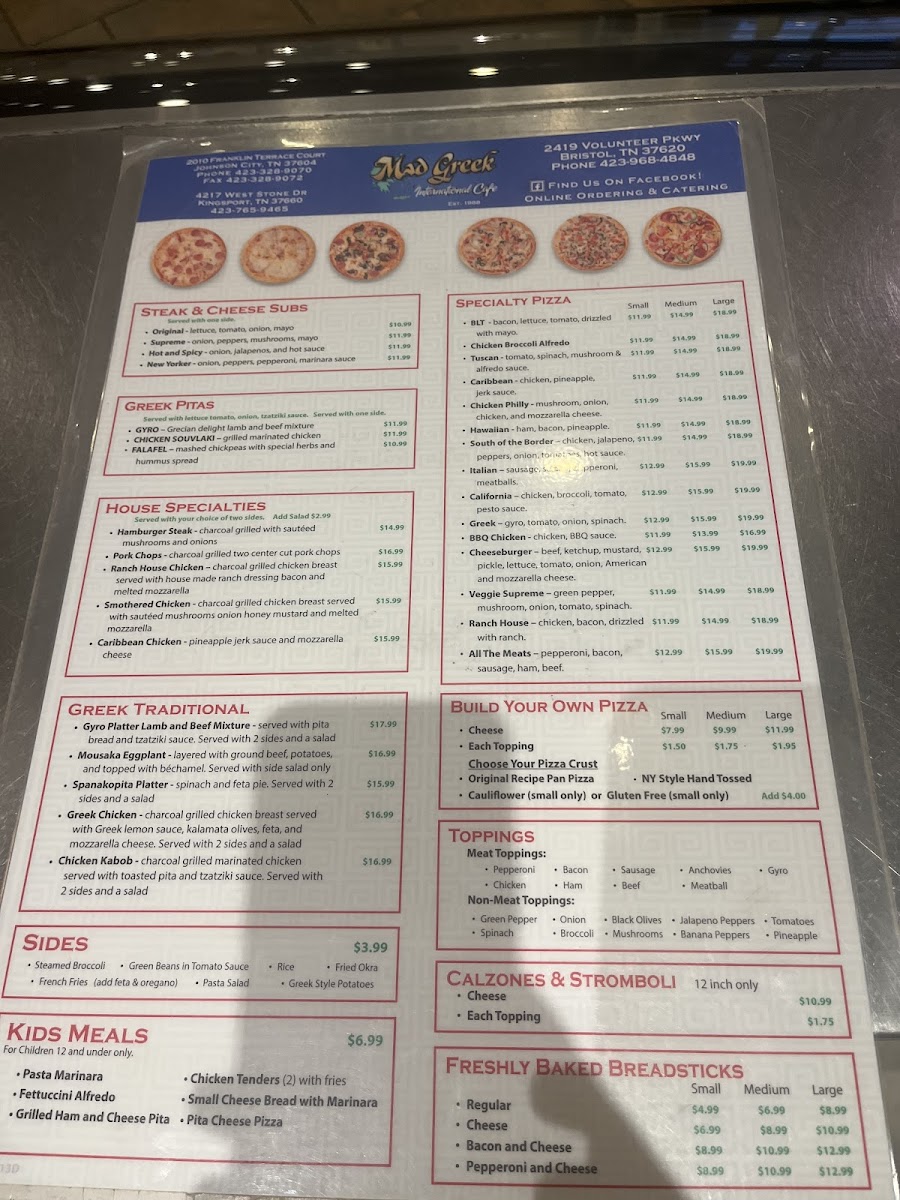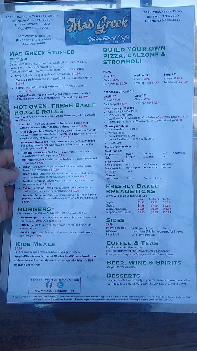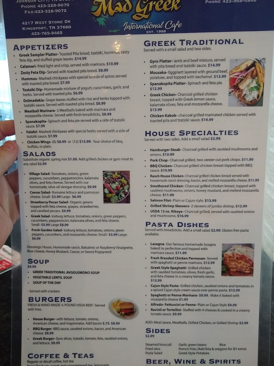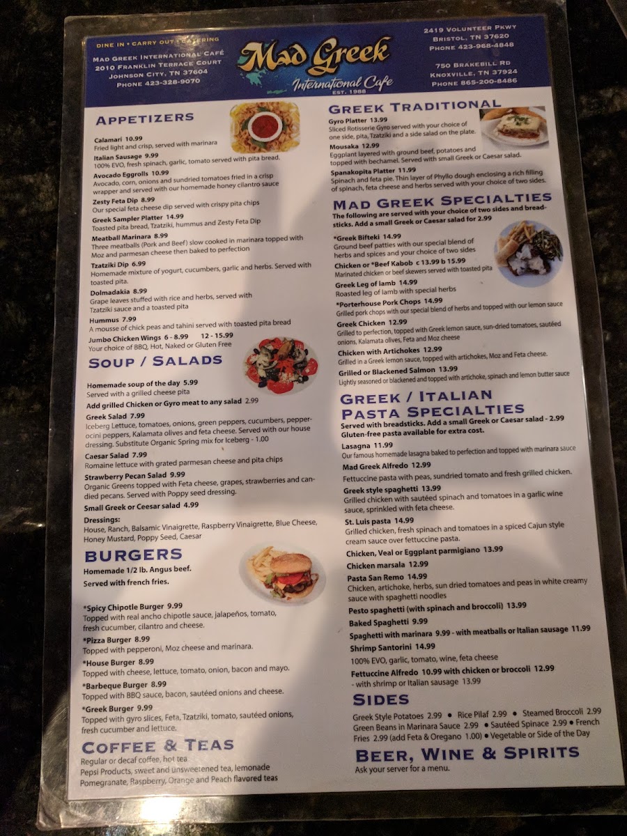 Welcome to the Mad Greek Restaurant, a culinary gem nestled in Johnson City, TN. Here, the menu is a delightful blend of Greek favorites and classic American comfort food, catering to diverse palates. The standout offerings include a variety of mouthwatering burgers, such as the Greek Burger topped with feta and tzatziki, and the flavorsome BBQ Burger adorned with sautéed onions and bacon.